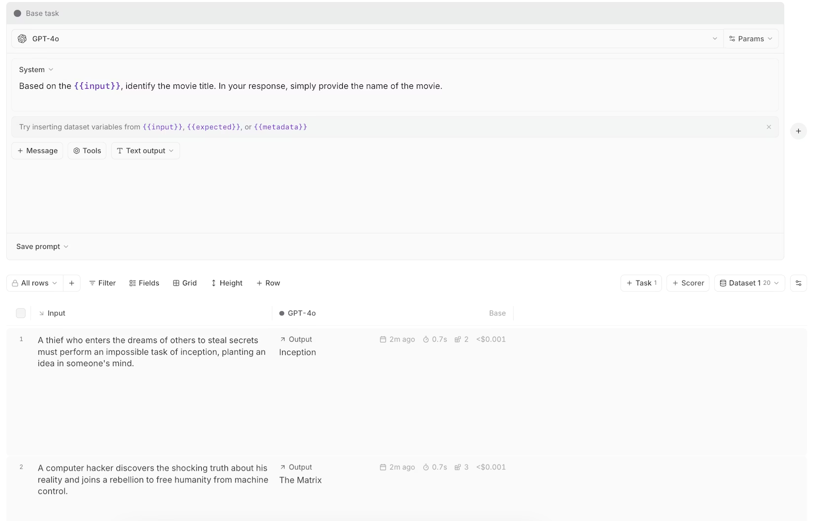 Braintrust's Loop automates the tedious parts of that cycle. Loop is an AI agent built into Braintrust that analyzes production failures, generates evaluation criteria, creates test datasets from traces, and suggests prompt improvements. Each of Loop's outputs feeds back into the evaluation system. A scorer that Loop generates can run in your next experiment or in production monitoring. A dataset that Loop builds from failure traces becomes a regression test suite.